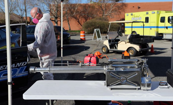 Beverage Distributors covered the costs to sanitize the public safety vehicles and offered their parking lot for the service.