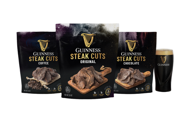 One of the key ingredients is Guinness 0. It’s right up there with beef and soy sauce in terms of the amount of Guinness in each bite. Guinness 0 is different from your normal Guinness stout because the 0 variety has no alcohol, allowing these bites of jerky to be entirely alcohol-free. It’s developed in a way that allows people on the go to enjoy it during a busy day at the office or as a road trip gas station pickup.