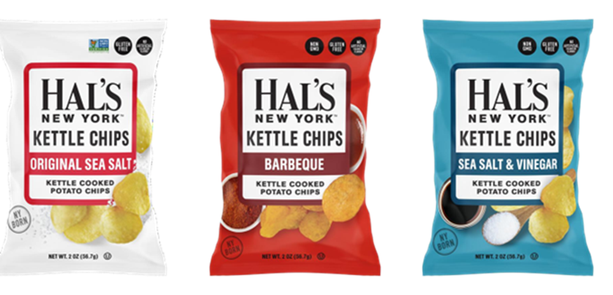 Hal’s New York Kettle Cooked Potato Chips are made in small batch, are gluten-free, non-GMO, and contain no artificial colors or flavors.