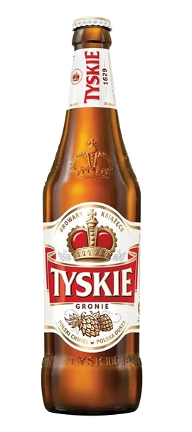 Tyskie is a Polish brand of beer. Its name comes from the brewery located in the Upper Silesian town of Tychy. It is brewed by the Tychy Princely Brewery, part of the Kompania Piwowarska brewery group, which was acquired by Asahi Group Holdings in 2017.